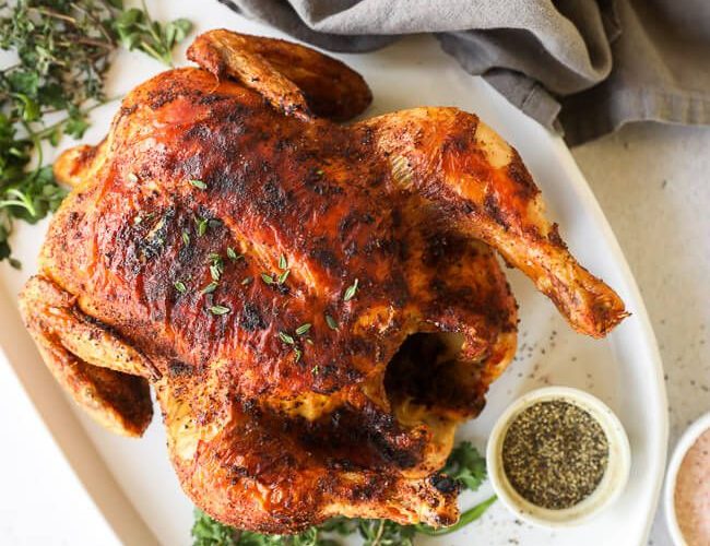 Make the best air fryer whole chicken – extra crispy skin on the outside, juicy and well-seasoned on the inside. This air fryer chicken recipe is perfect for Thanksgiving or Christmas or your Sunday table!
