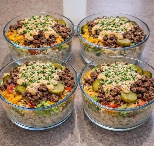If you love the bold flavor of a classic fast-food  burger but want something lighter, healthier, and more balanced, this Big Mac Cheeseburger Protein  Bowl is the perfect solution. It delivers everything people crave in a traditional cheeseburger — juicy seasoned  beef, tangy pickles, crisp lettuce, melted cheese, and a creamy Big Mac-style sauce — but without the bread.