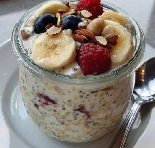 Sugar free creamy overnight oats with berries and banana is a simple and healthy breakfast that is loved by many people around the world. This recipe is made by soaking oats in milk and mixing them with natural ingredients like fresh berries and ripe banana. The oats become soft and creamy after resting overnight, which makes them easy to eat and very satisfying. You do not need to cook anything in the morning, which saves time and effort. This recipe is perfect for people who want a quick and easy meal that still tastes amazing. The natural sweetness from the fruits makes it enjoyable without adding any sugar. It is a great way to start your day with something fresh and homemade.
